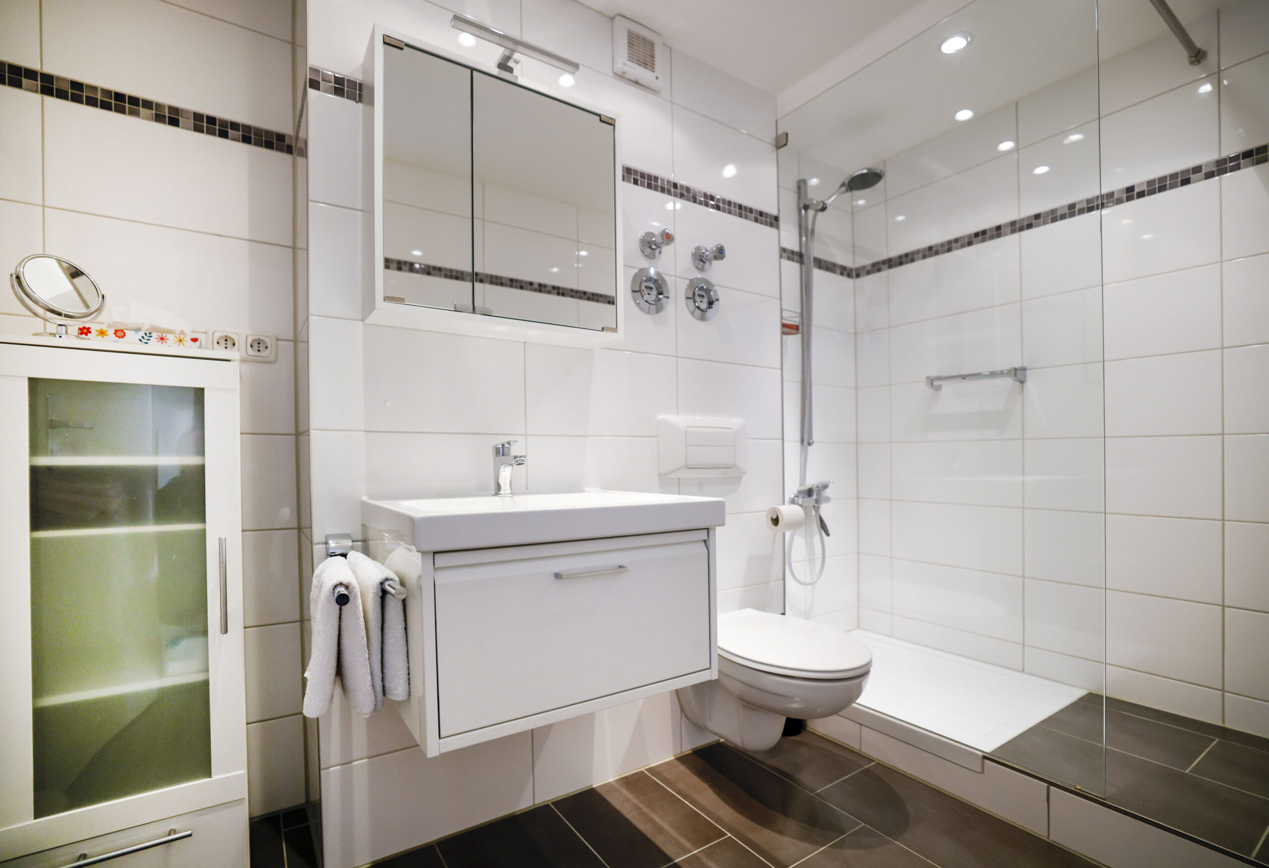 • Badraum mit WC und flacher Dusche